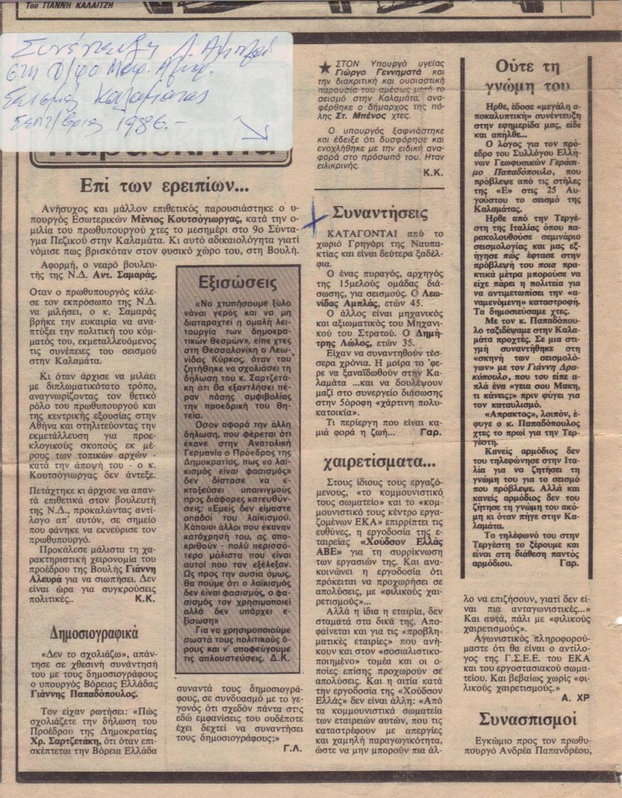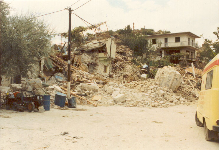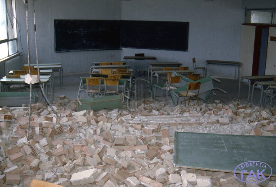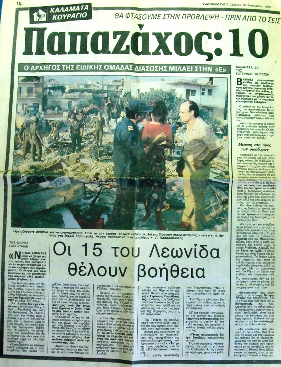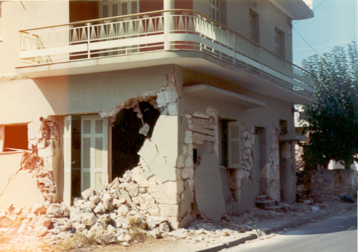 Εικόνα: Ο σεισμός του 1986 στην Καλαμάτα: Η κατάρρευση μιας πενταόροφης πολυκατοικίας. Νίκος Ηλιόπουλος, 1986. Public Domain